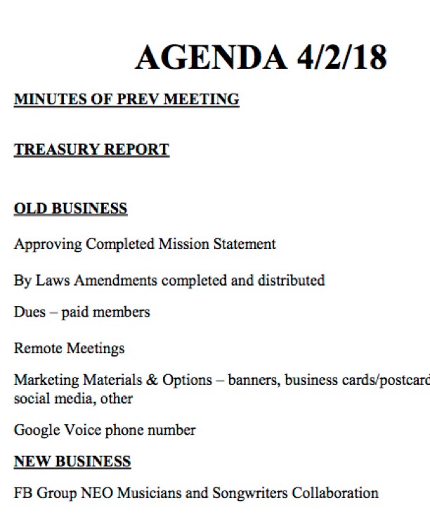 New Business, we acknowledged that we are now collaborating with a Facebook group