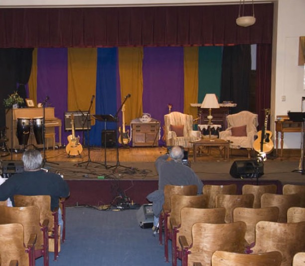 we placed four stools across the stage at Quirk Cultural Center, put microphones
